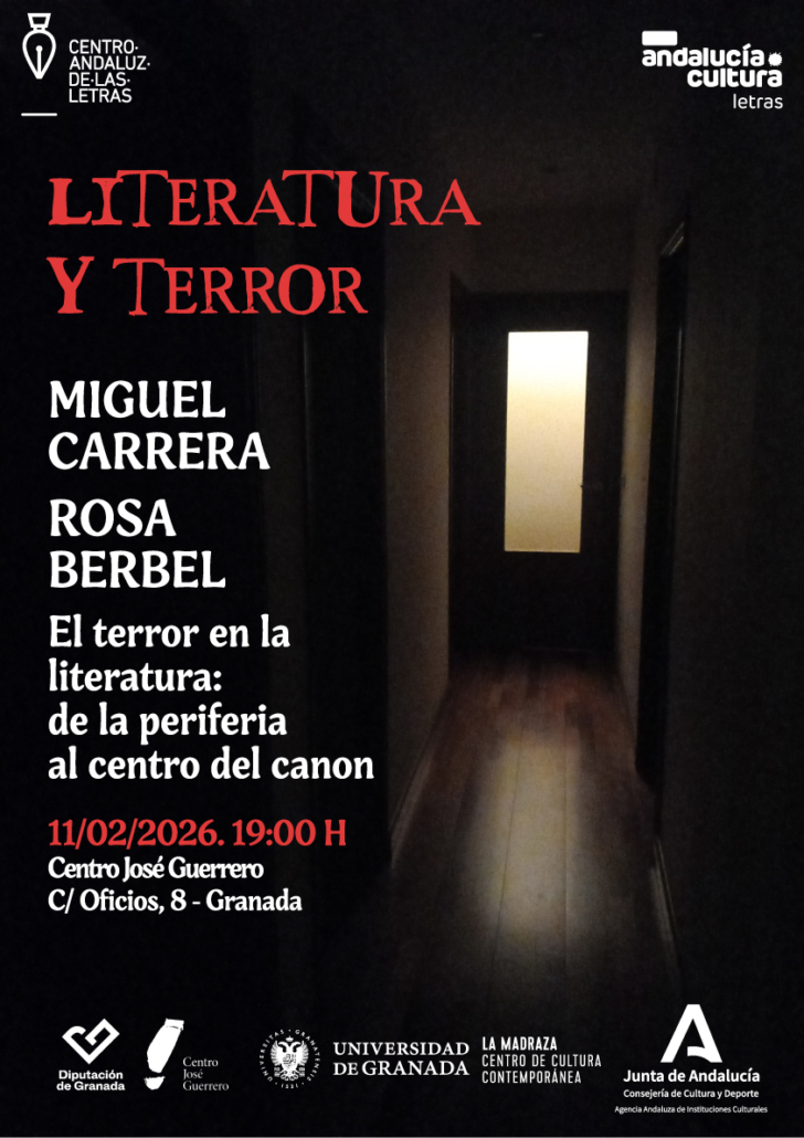 El Centro Andaluz de las Letras les invita a una sesión en Granada, en el Centro José Guerrero, dentro del ciclo Literatura y terror y otras formas de inquietud en la literatura contemporánea. En esta ocasión, Miguel Carrera y Rosa Berbel nos hablarán sobre El terror en la literatura: de la periferia al centro del canon. Reivindicando la ficción de terror como un género central para comprender las inquietudes sociales y culturales de cada época. Desde la novela gótica hasta el terror contemporáneo en la literatura y el cine, subraya su valor estético, su capacidad crítica y su creciente reconocimiento dentro del canon cultural actual.
